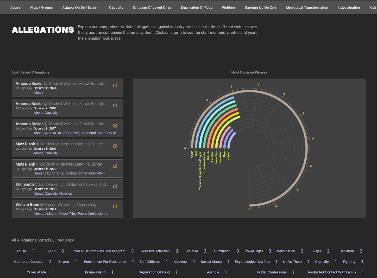 Yelp of abusive teen programs to help share testimonies and aggregate statistics through allegations and public records.